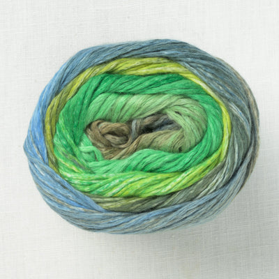 The yarn comes in an interesting mix of solids & happy, self-striping colorways. Stick with one color or mix a solid with a variegated for a fun take on stripes, mosaic or color blocking.