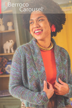 Lightweight & colorful, Carousel is a blend of superwash wool & acrylic that is wonderful for all season garments & accessories. We especially love knit & crochet wraps, scarves & cowls in the yarn. The fine gauge of the yarn coupled with the painterly colors allows the yarn to really shine. Even simple lace & stockinette patterns look fabulous as the yarn creates a marled, free-flowing, patterned fabric.