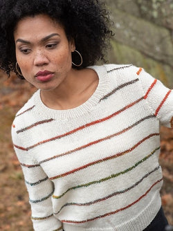 Lightweight, soft & nubby Berroco Sesame is a fun, versatile yarn flecked with color & texture. The yarn knits into an abstract painterly stripe pattern that looks great in stockinette & simple stitch patterns. The changing colors of Sesame look amazing as a yoke feature on solid sweaters. It is also a nice choice for accessories, cardigans, tees & sweaters.