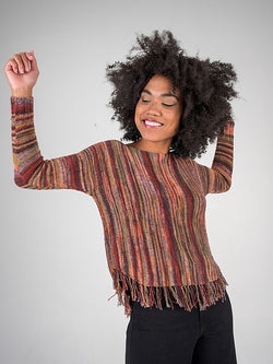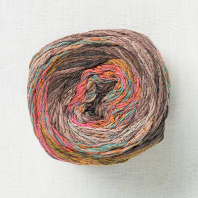 Ideal for warmer weather, Summer Sesame is a DK/light worsted weight, self-patterning yarn spun from a lightweight blend of cotton, acrylic & nylon. As the colors ebb & flow, the pattern is reminiscent of a horizon or natural landscape. A wonderful yarn for spring pullovers, tees, wraps & ponchos.