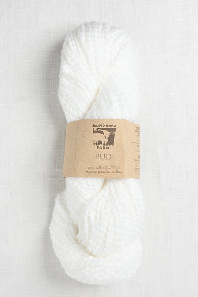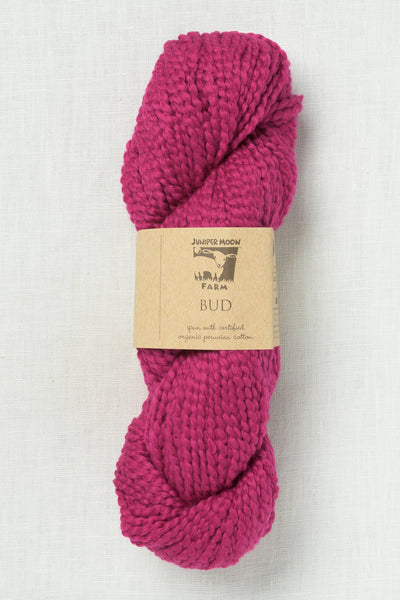 Soft, cuddly & breathable, Bud is spun with organic Peruvian cotton. A nubby texture adds textural interest to the simplest of stitch patterns. Bulky in weight, the yarn knits up quickly on size US 9-11 needles. A great yarn for baby blankets, clothes, as well as adult accessories. Good for those with wool allergies.