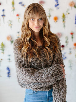 Light, fluffy & sparkly are all words that come to mind when describing Spun Cloud. Hand spun from 100% wool, this super bulky, thick & thin yarn has two skinny strands of sparkle lurex plied around the strand of wool. Knit gorgeous, chic hats, mittens, scarves & home accessories with the beautiful range of solid & heathered colorways.