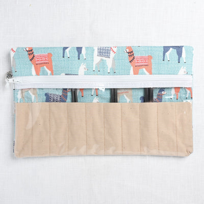 Knitty Ditty Bags, Clear Interchangeable Needle Case, Blue Alpaca Print