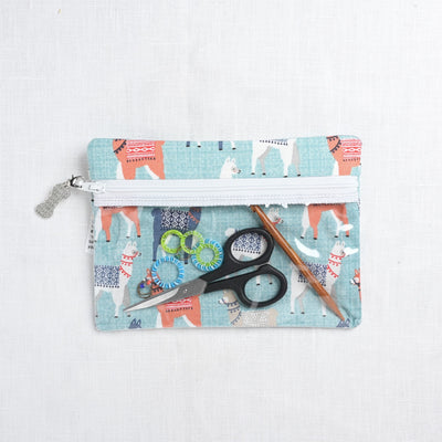Knitty Ditty Bags, Small Clear Ditty Notion Bag, Blue Alpaca Print