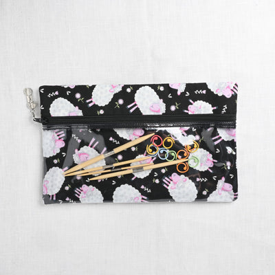 Knitty Ditty Bags, Large Clear Ditty Notion Bag, Black Sheep Print