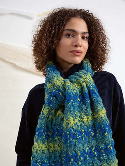 Light, soft & airy, Bergen is a fluffy bulky weight yarn that knits up quickly into unique accessories such as scarves, cowls, hat & mittens. It is also light enough for statement making ponchos & pullovers. Spun with super fine alpaca & a touch of nylon, the yarn possesses a chain construction to help knits maintain shape. The collection of self-patterning colorways is fun & interesting to knit.