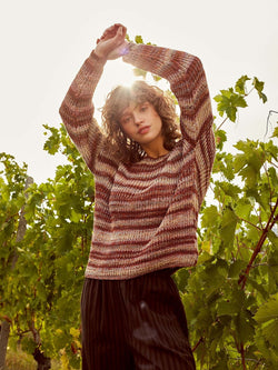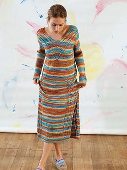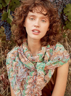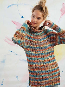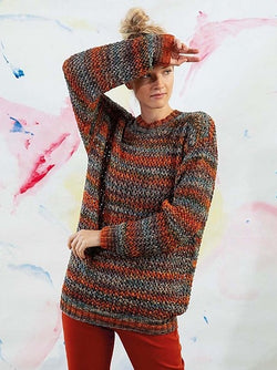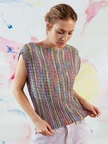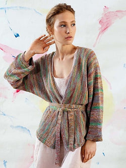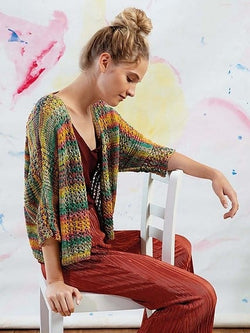 Karma is a delightful, self-striping yarn that knits into garments with unique character & a lovely drape. The blend of cotton, viscose, acrylic & linen is ideal for a range of seasons. The yarn has a chainette construction so knits hold their shape well. We love the hint of shimmer that appears in the color repeat.