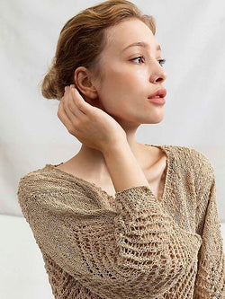 Evoking memories of past great fashion eras, Marlene Luxe creates light knit pieces with a subtle sheen, a little bit of sparkle & perfect drape. The unique, couture yarn consists of a thin, cotton cord dotted with delicate nubs. Designed to create an open, summery fabric, the yarn works well knit into cardigans, tanks, & tees. The added sparkle makes this yarn amazing for sophisticated evening & celebratory knits.