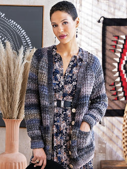 Showcasing Noro’s signature blend of Corriedale wool, Merino wool, silk & mohair, Tasogare is a gorgeous light worsted yarn that will let creativity blossom. With a subtle thick & thin quality, the soft yarn knits into colorful sweaters, cardigans, wraps & accessories.