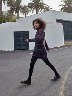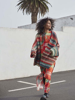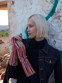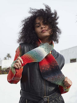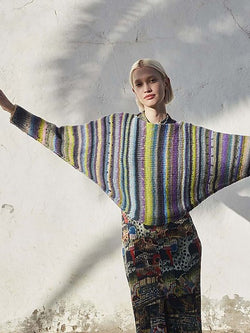 The self-patterning yarn creates abstract, painterly stripes dotted with colorful splashes.. Simple stitch patterns, such as stockinette, show off the yarn beautifully.