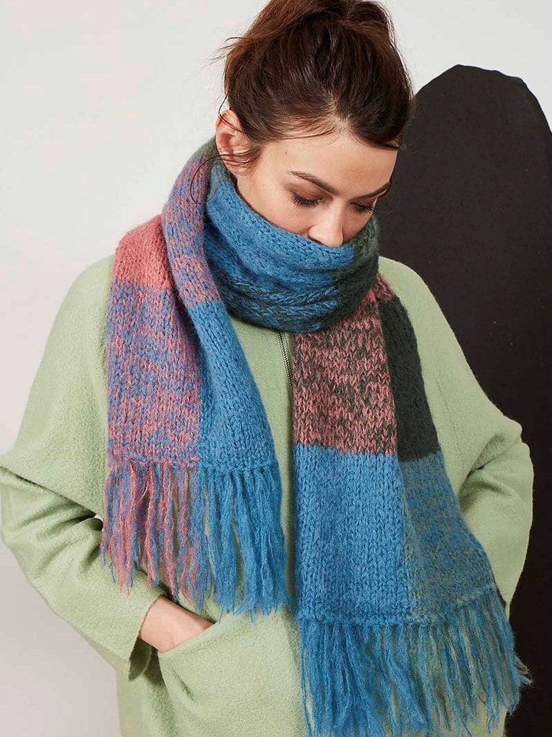 Lang Yarns Suri Alpaca - 2 balls each of blue 1082.0006, rosewood 1082.0087, dark green 1082.0018 and olive 1082.0097.