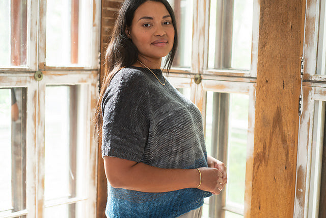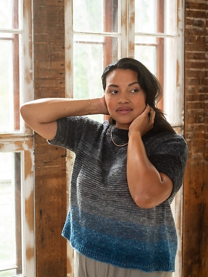 Abalone is a boxy fit short sleeve tee. Worked in two colors of Isola.