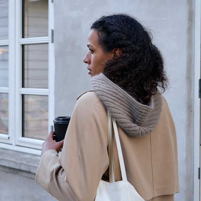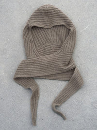 You start by working the first half of the scarf from one tip to the midpoint of the finished scarf before working the second half from the other tip to the midpoint. You then graft the two pieces together at midback and pick up stitches for the hood. The hood is subsequently worked in the same 2x2 rib pattern and shaped with decreases and increases for the perfect fit.