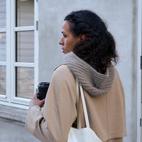 Alex Hood can be worn with the hood down just like a regular scarf or, on extra cold days, with the hood pulled up to protect the head and face against the wind and weather.