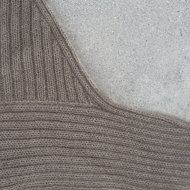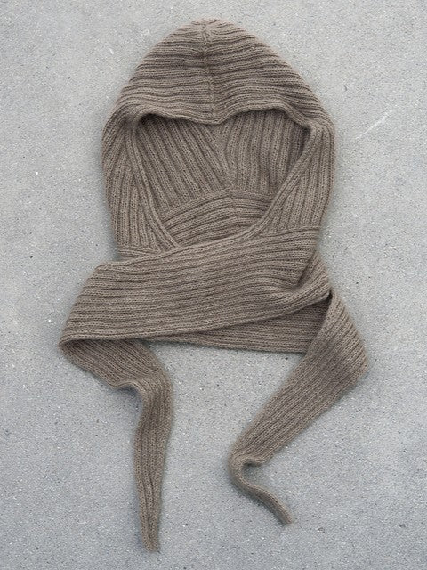 Alex Hood is a hooded scarf that is worked back and forth in a simple 2x2 rib pattern. It is worked using 1 strand of Merino + either 1 strand of Soft Silk Mohair or 1 strand of Compatible Cashmere held together.