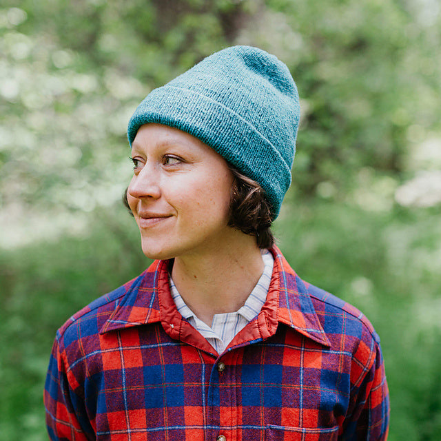 This double-layered hat is worked seamlessly from end to end in a single piece. Casting on a small number of stitches, the hat begins with a top-down crown (shaped with increases). Once your full hat circumference has been reached, you will knit circularly to the desired length for your size and style (Beanie or Watchcap), then work a second crown (shaped with decreases) that mirrors the first to achieve a completed hat that resembles an elongated egg. Fold the finished piece in upon itself at the halfway point, punching one crown into the second crown, to create a double-thick, reversible stockinette cap that’s both warm and stylish.