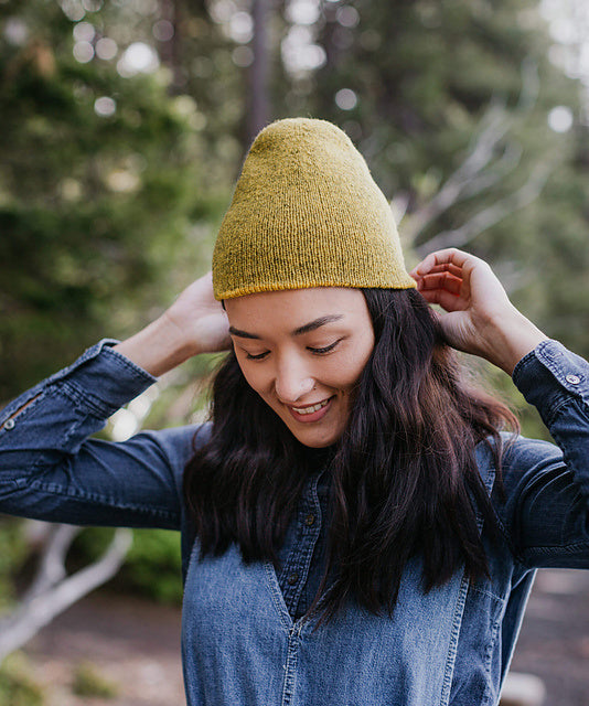 Adult Beanie two-in-one variation photographed in Goldfinch Overtone & Goldfinch Undertone