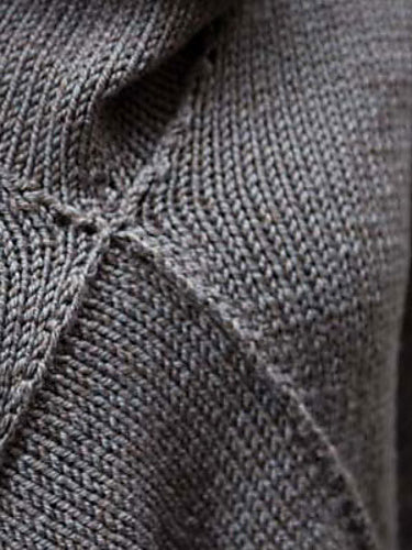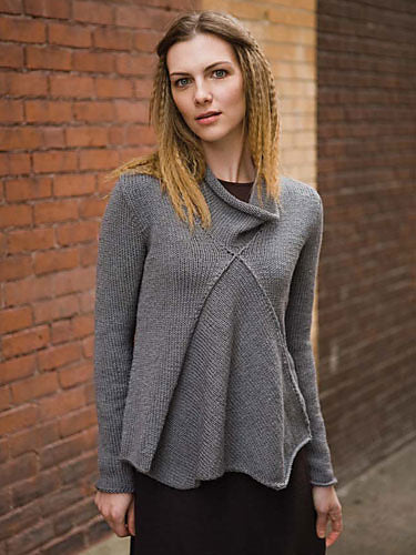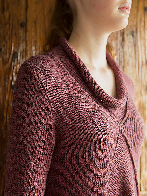A simple shape that contains so much movement, this turtleneck features a clever insert that interrupts the otherwise straightforward stockinette pullover. Pieces are joined with visible seams that highlight intersecting pieces.