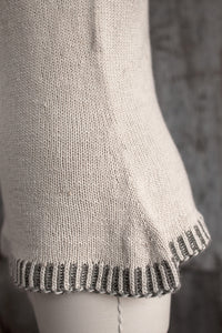 Note: It is important to work gauge swatch in the round and block for proper sizing and fit.