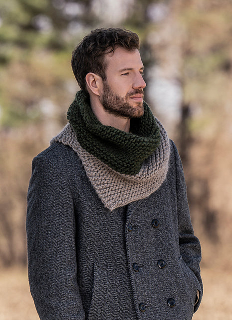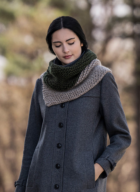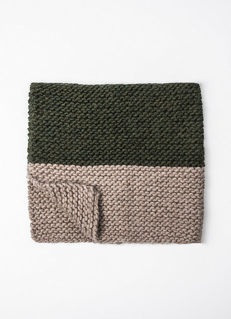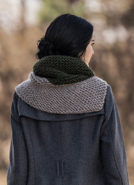 Perfect for a first project, this squishy cowl starts garter stitch worked flat, then joined in the round for an easy transition from one new skill to the next. Knit on big needles, this quick cowl makes a great gift.