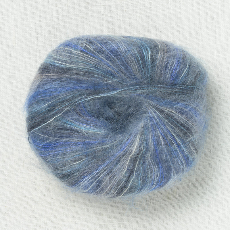 Light, airy with an ethereal halo, Aerial is a blend of Superkid mohair & silk. Knit alone, the yarn creates a fine fabric that is ideal for elegant wraps, scarves & accessories. Hold with another yarn to add a glow & enhance depth of color. The multicolor strands create a beautiful color effect. The yarn is lovely combined with a DK weight for cozy cardigans, pullovers, mittens & hats.