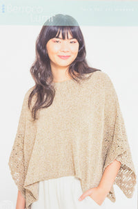 The pattern booklet includes styling inspiration, as well as well written knitting instructions. Patterns include 1 tank top, 2 tees, 1 pullover, a glamorous poncho & a crochet market bag.