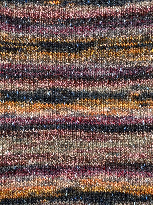 Lightweight, soft & nubby Berroco Sesame is a fun, versatile yarn flecked with color & texture. The yarn knits into an abstract painterly stripe pattern that looks great in stockinette & simple stitch patterns. The changing colors of Sesame look amazing as a yoke feature on solid sweaters. It is also a nice choice for accessories, cardigans, tees & sweaters.