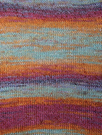 Ideal for warmer weather, Summer Sesame is a DK/light worsted weight, self-patterning yarn spun from a lightweight blend of cotton, acrylic & nylon. As the colors ebb & flow, the pattern is reminiscent of a horizon or natural landscape. A wonderful yarn for spring pullovers, tees, wraps & ponchos.