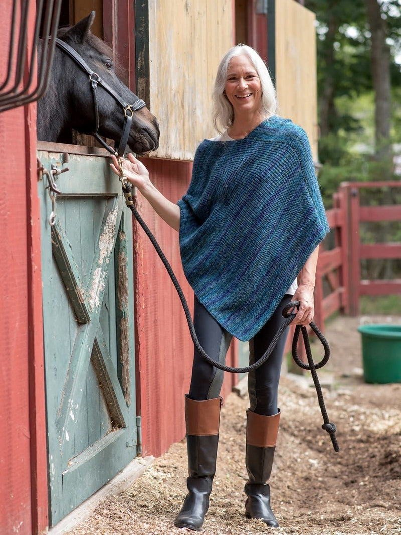 Easy ribbing and a little bit of stitching are all you’ll need to whip this knitted poncho pattern in Berroco Millefiori Light.