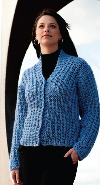 The vest and jacket are the same pattern without and with sleeves, respectively.