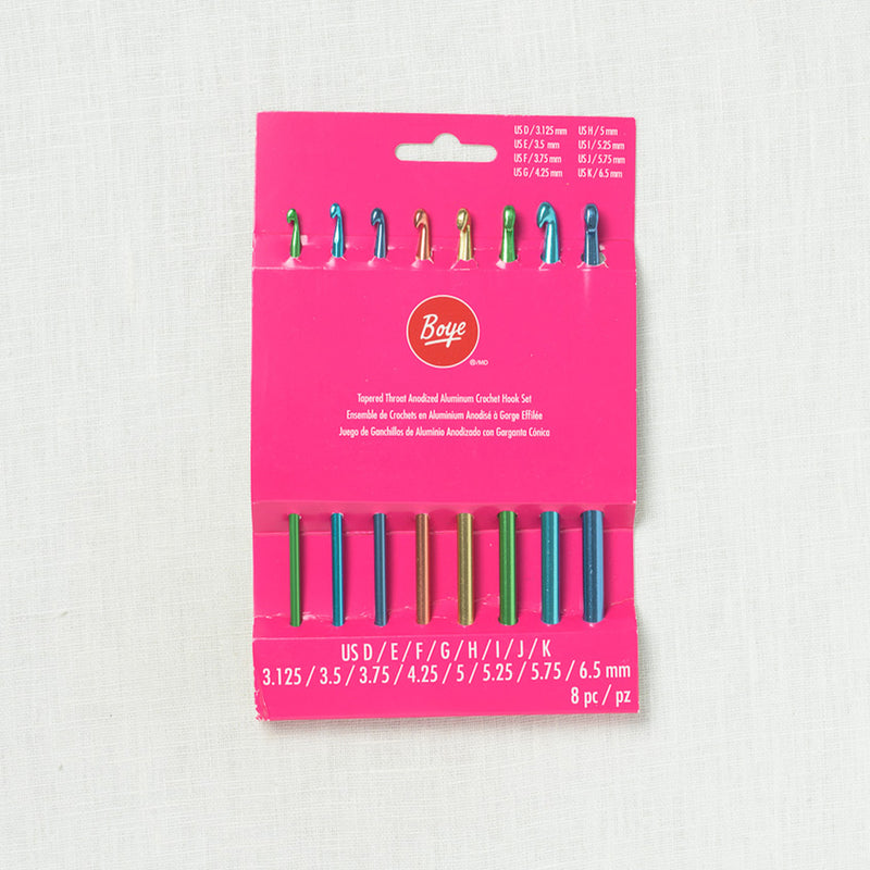 Boye Tapered Throat Anodized Aluminum Crochet Hook Set