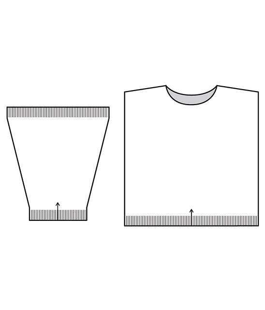 - Garment is worked flat in pieces and seamed, with optionally exposed seams.