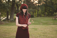 This matching Hat & Scarf set is created by holding one strand each of two different colors of Mecha to create a flame-like appearance in the simple lace.