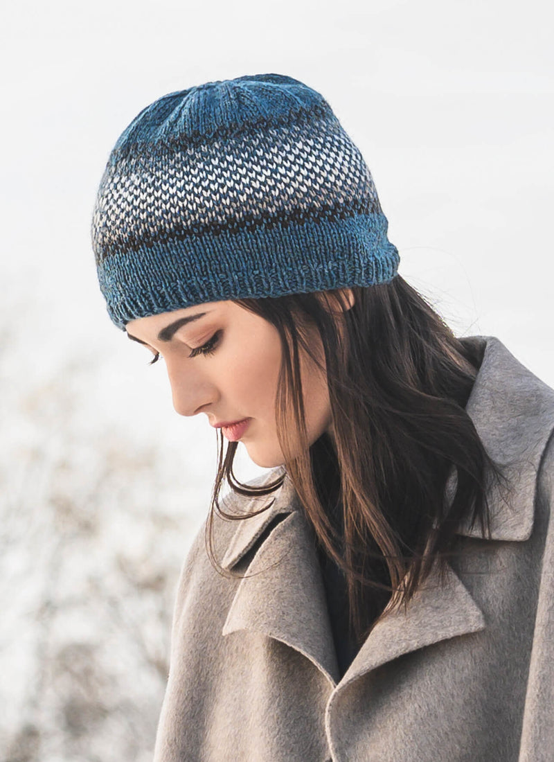 This beginner fair isle hat pattern is a fun project using just one bundle and one hank of Woolstok (Worsted). Great for both men and women and enough leftover yarn for a pom.