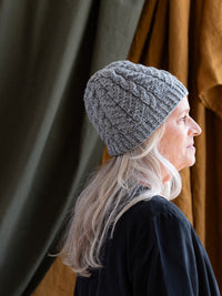 First designed for Quarry as part of our Ganseys collection, this unisex cap pattern now includes directions for knitting at a finer gauge to make the most of Arbor’s lush palette and crisp definition. Rope cables and delicate seeded tree forms sprout from a brim of half-twisted rib, which can be worked to shorter or longer lengths to achieve your desired fit.