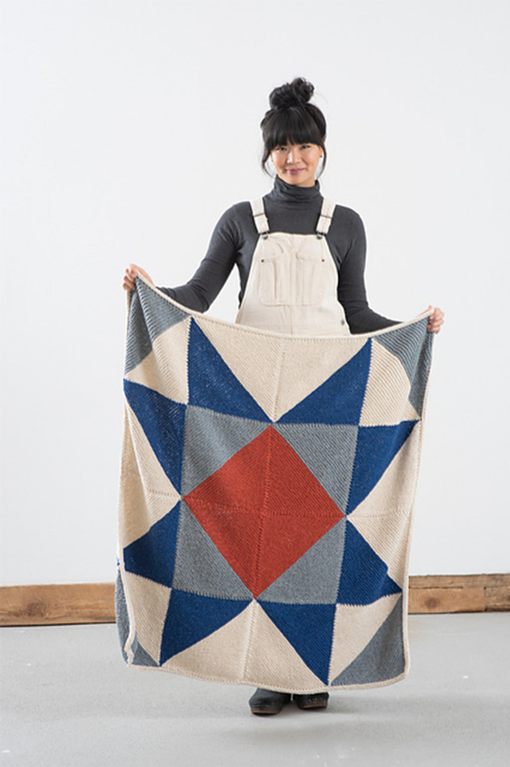 Cali is an easy garter stitch star blanket you’d want to take everywhere. Blocks are worked separately and seamed together in strips.
