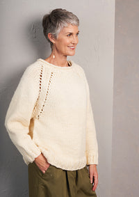 Pattern has design options for three neck styles - crew, cowl neck and turtleneck. Only the crew neck is photographed.