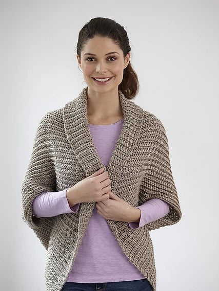 A large hook is used to create an open fabric that will easily stretch to fit a range of sizes. Worked flat in 1-row pattern repeat. Fold and seam sides to create armholes to finish.