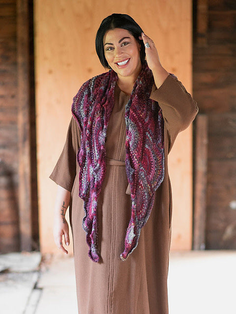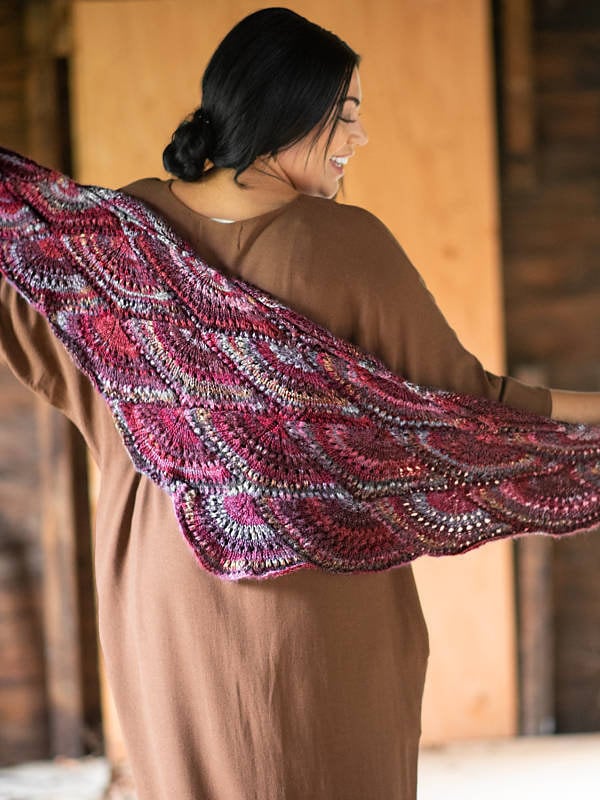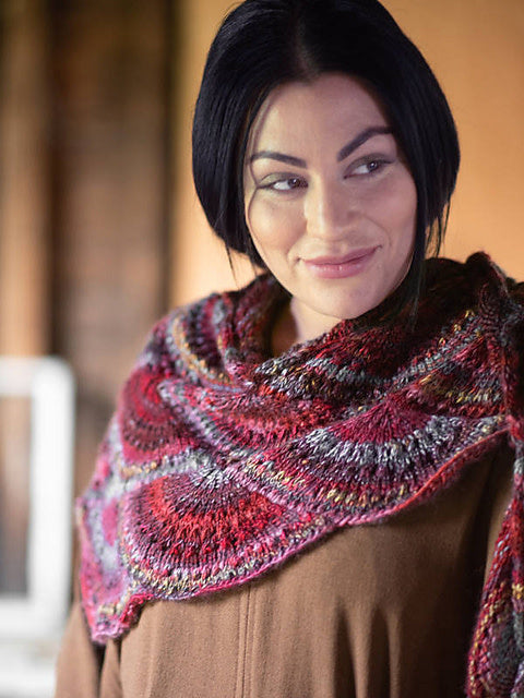 Carol uses the worsted weight Berroco Millefiori and a modular construction to make a beautiful shawl. Try working more shells with Berroco Millefiori Light for a different look.