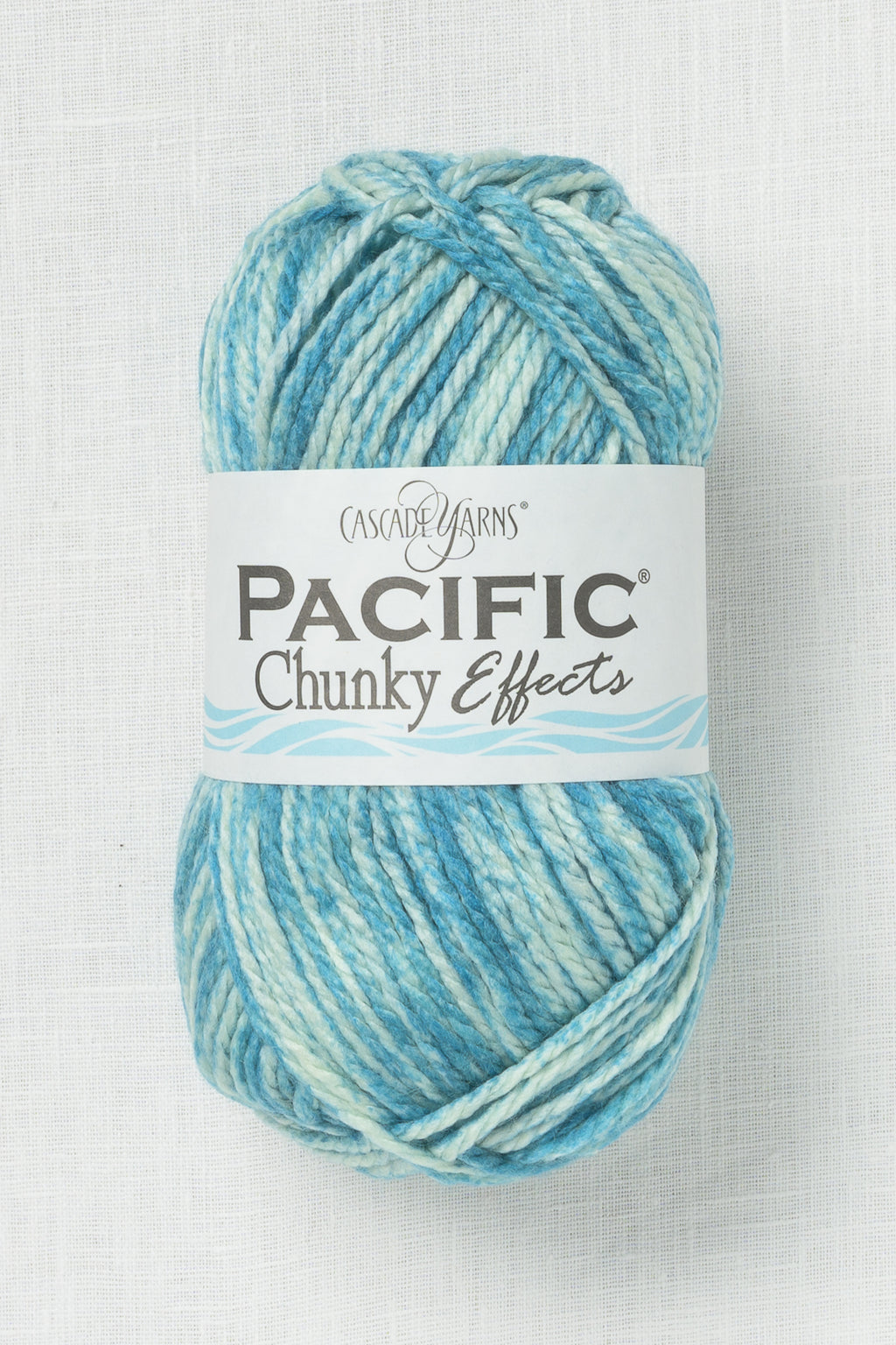 Soft & cozy Pacific Chunky is a lovely & versatile yarn for everything from adult garments & accessories to easy to care for baby blankets & clothes. The combination of superwash Merino wool & acrylic give this yarn warmth with the feel of wool with the durability of acrylic.