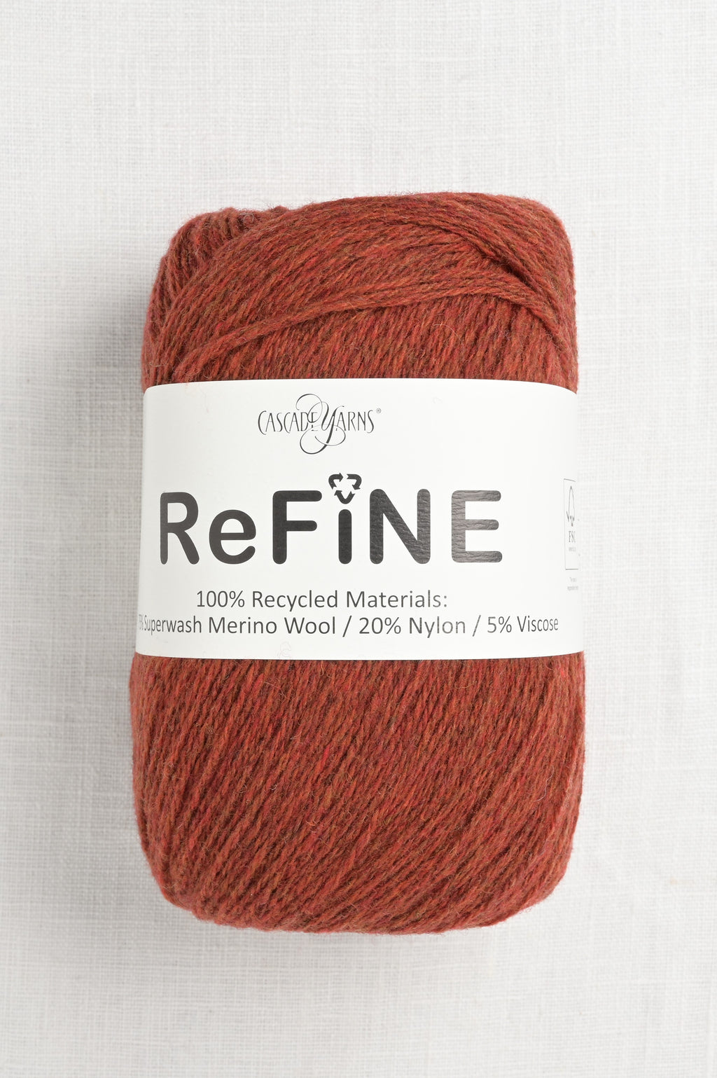Spun from 100% recycled materials, ReFine is a yarn that is wonderful to knit with & beneficial to the planet. Spun from soft, Merino wool & nylon for durability, this fingering weight yarn is wonderful for socks, baby clothes & shawls. The earthy palette of heathered colorways provides many options for knit projects. At 503 yards, each ball has enough yarn for an adult pair of socks.