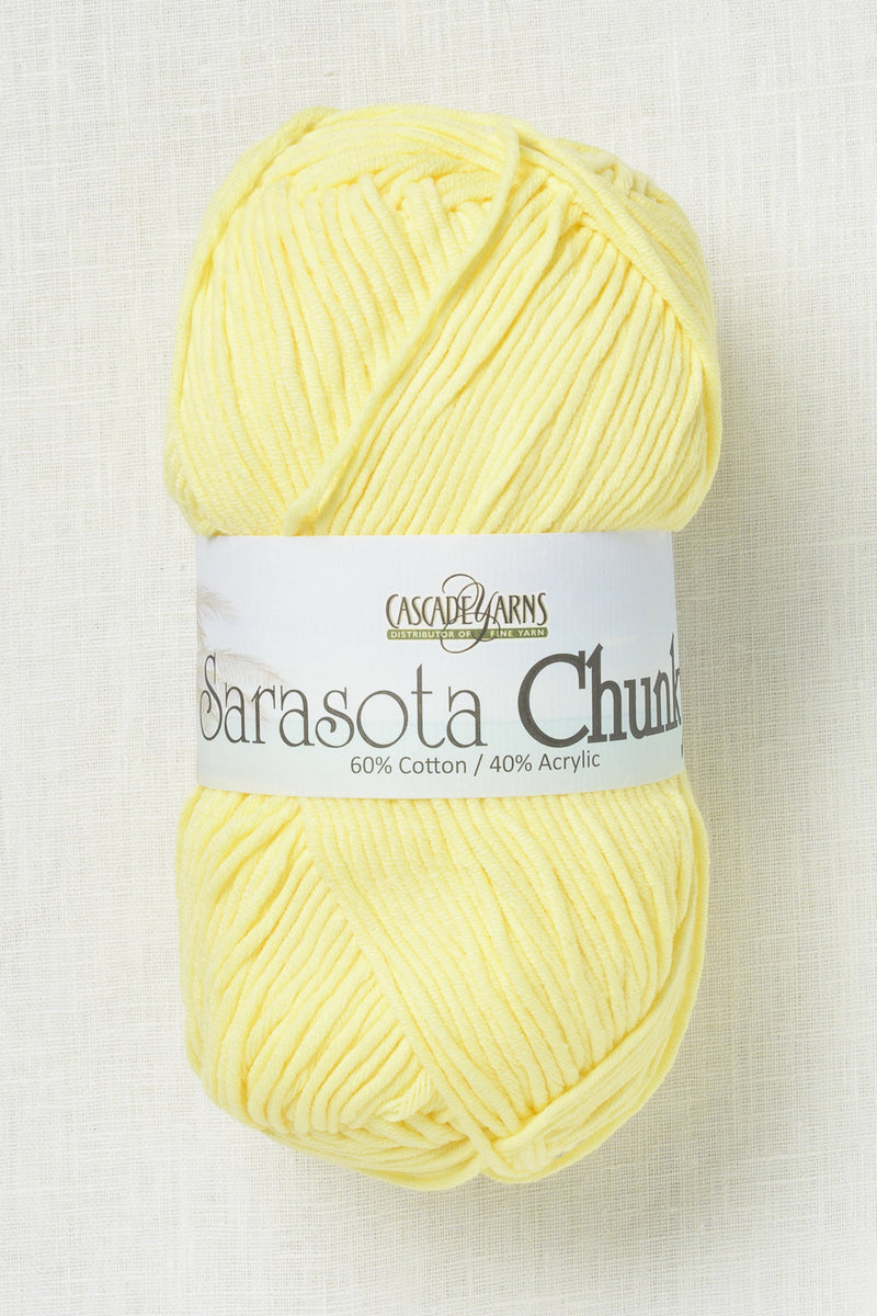 Durable & easy to care for, Sarasota Chunky is a soft cotton & acrylic blend. Wonderful for all season knits, as well as sensitive skin, this yarn is ideal for adorable baby blankets, baby clothes, pullovers, tanks & tees.