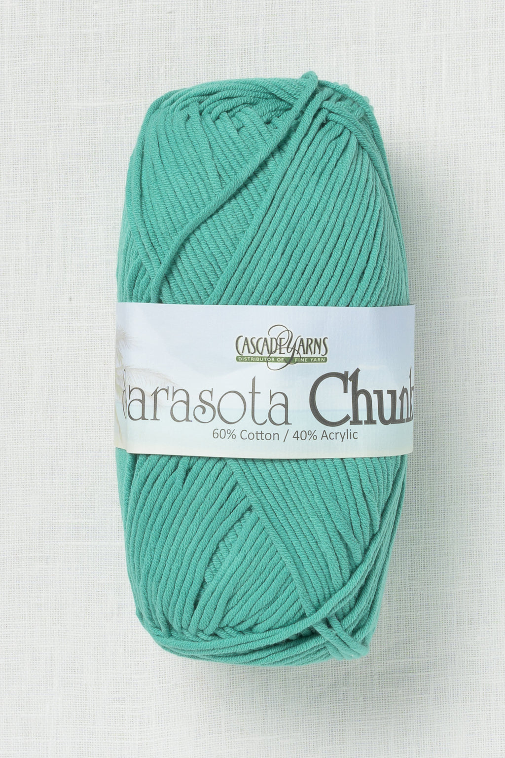 Durable & easy to care for, Sarasota Chunky is a soft cotton & acrylic blend. Wonderful for all season knits, as well as sensitive skin, this yarn is ideal for adorable baby blankets, baby clothes, pullovers, tanks & tees.