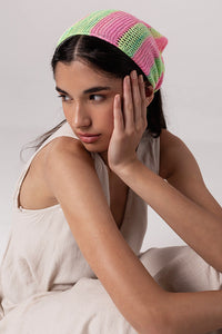 You can knit it in stripes, like the sample, or you can go a more minimal way and knit it in a single color.