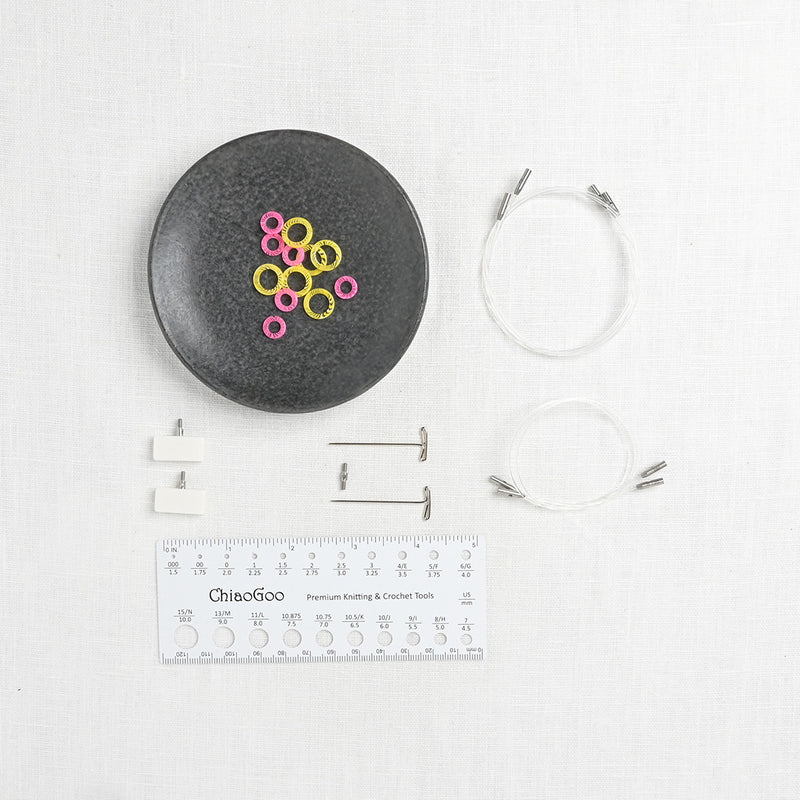 - 7 pairs of interchangeable tips (size US 2, 3, 4, 5, 6, 7, 8)