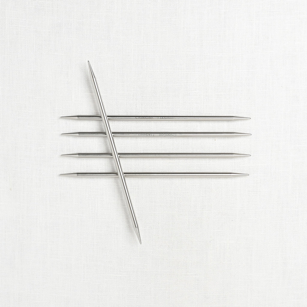Enjoy smooth, snagless knitting with ChiaoGoo stainless steel DPN’s. Crafted from a single piece of steel, these needles possess fine pointed tips to easily knit into stitches & minimize split fibers. Each set includes 5 double point needles, 6” in length.
