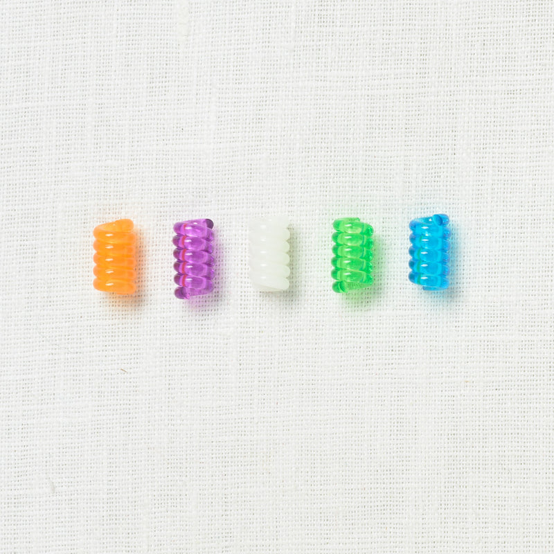 Ingenious flexible coils hold needles together to keep stitches from slipping off the end. They are also handy for keeping needles together when storing. Fits size US 0-9 (2-5.5 mm). Includes 3 different sizes.