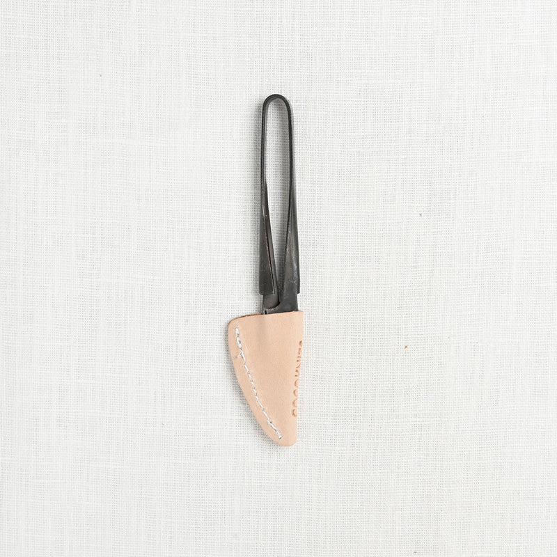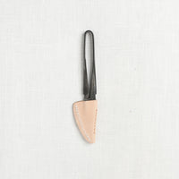 Quickly snip yarn ends with this easy to stash tool that is ideal for every knitter’s notion bag. The one-piece snip is forged from black steel & comes with leather cover to protect the blades.