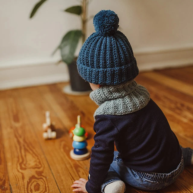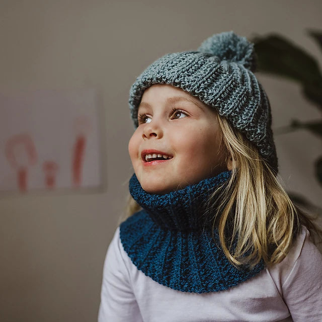 The ARAT turtleneck cowl is worked in rounds top down. Stitches for the shoulders are increased evenly spread within the ribs without interrupting the pattern.