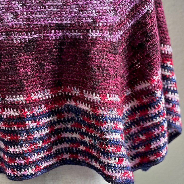 To work into horizontal front bar of each hdc on WS rows, tilt the top edge away from you to access the third loop ofthe half-double crochet in front of the 2 back loops. Insert hook into this bar.